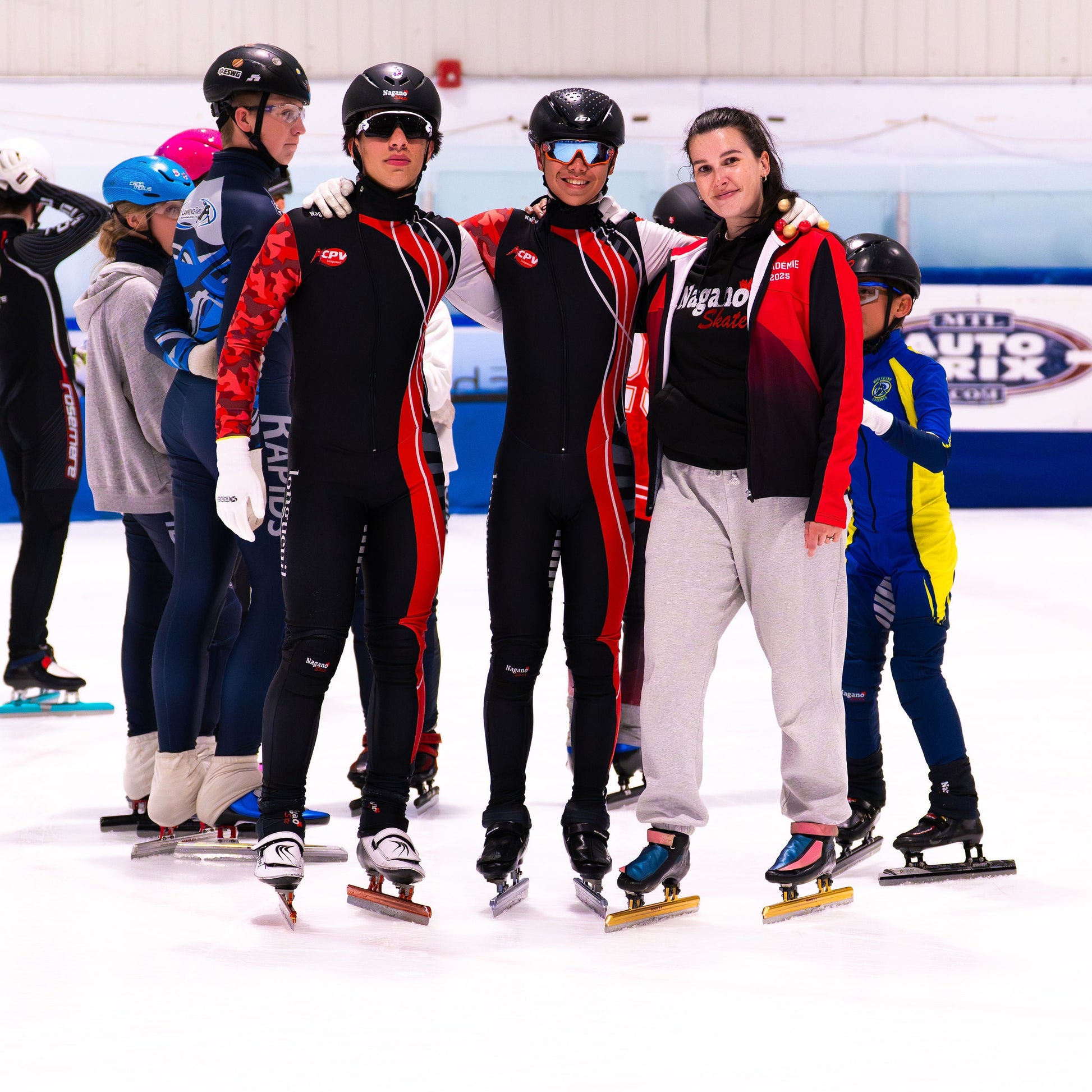 Nos entraîneurs passionnés accompagnent la prochaine génération de patineurs de vitesse avec rigueur, énergie et bienveillance.
